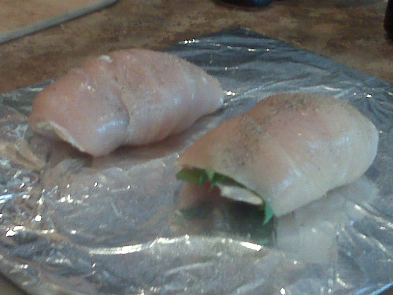 After rolling the chicken and securing it with a toothpick, I cooked it 8-10 minutes under the broiler.
