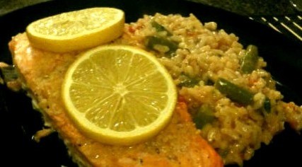 I served it with a nice piece of salmon that I seasoned with salt, pepper and garlic and lemon slices. Baked at 400F for 15-18 minutes.
