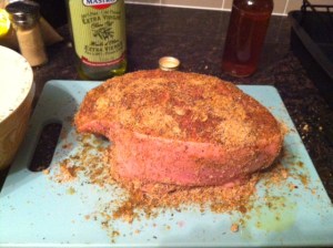 Mix the spices and herb together in a small bowl. Rub the spice blend all over the pork and marinate for as long as you have time for, as little as 1 hour or up to overnight, covered, in the refrigerator.