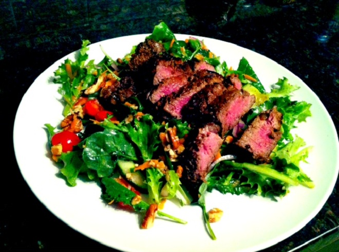 I love a good salad! And it seems I always get them at my favorite restaurants, but never to really make them at home. Therefore, I’ve decided that I will make more “gourmet” salads. I will be honest with you, I never remember exactly how I do my steak marinades, it’s really depends on what I have in the house at that time and/or what I end up grabbing in the end. I also don’t measure anything when I do them, so I believe this my best estimation as to how I made this salad… but again, who knows.