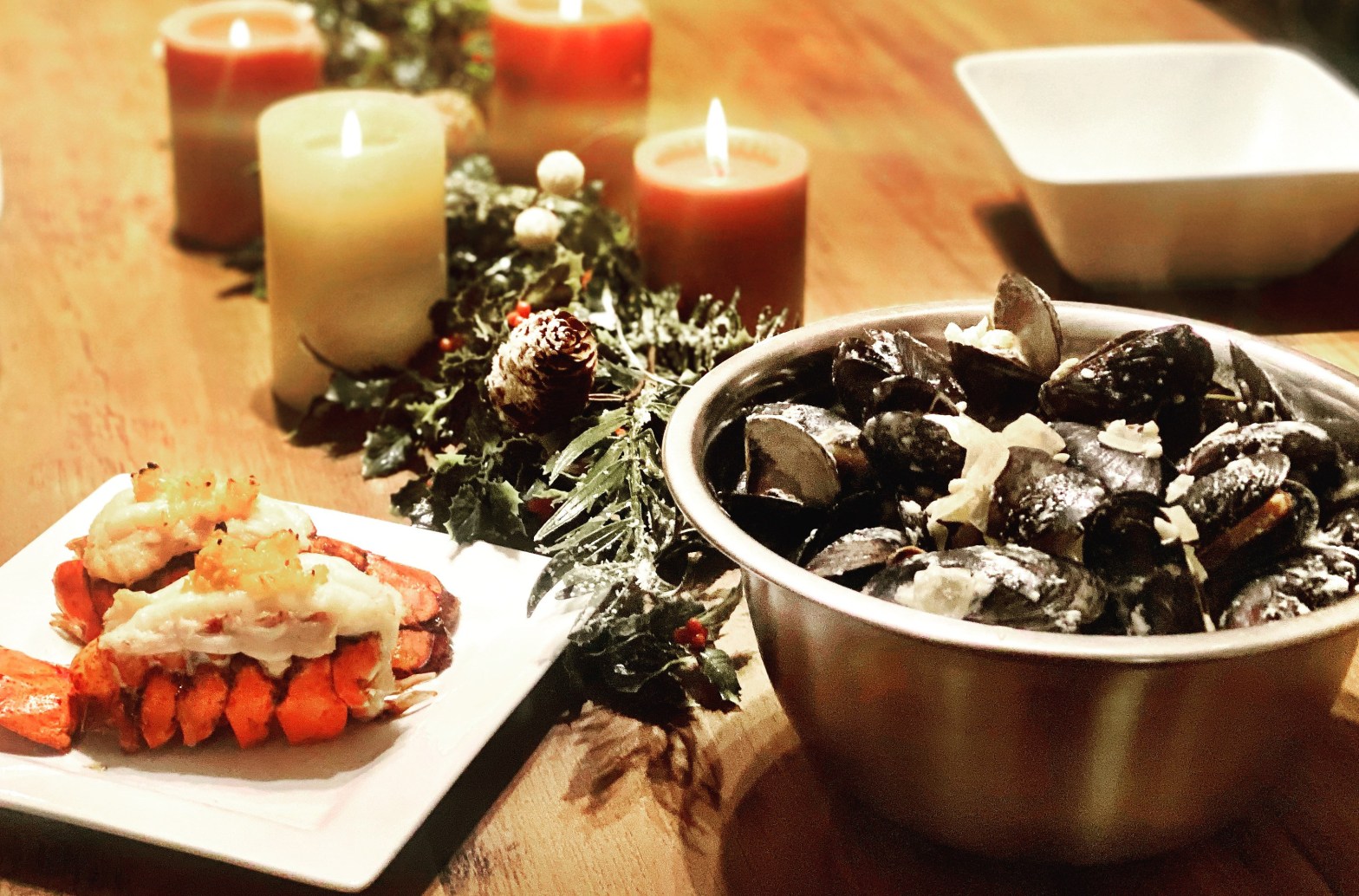 Serve right away. This was served with my Prosciutto-Wrapped Scallops and I always eat mussels with a baguette to dip in the sauce!