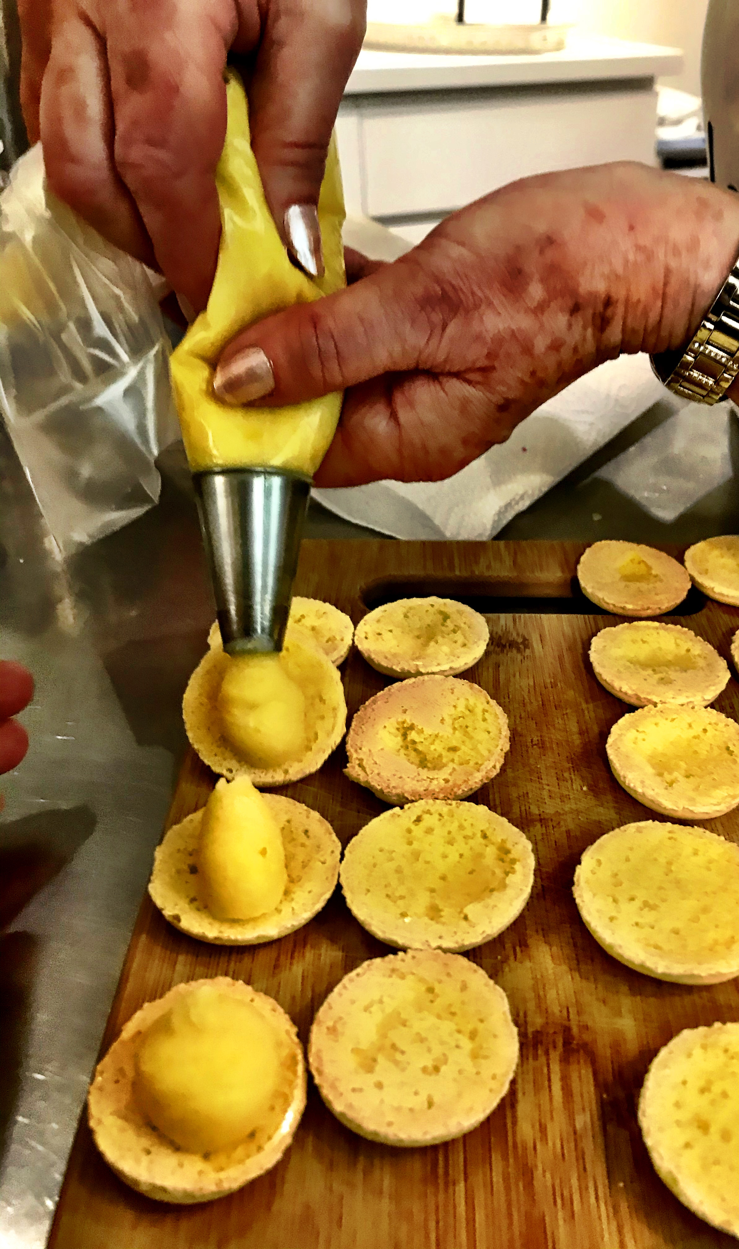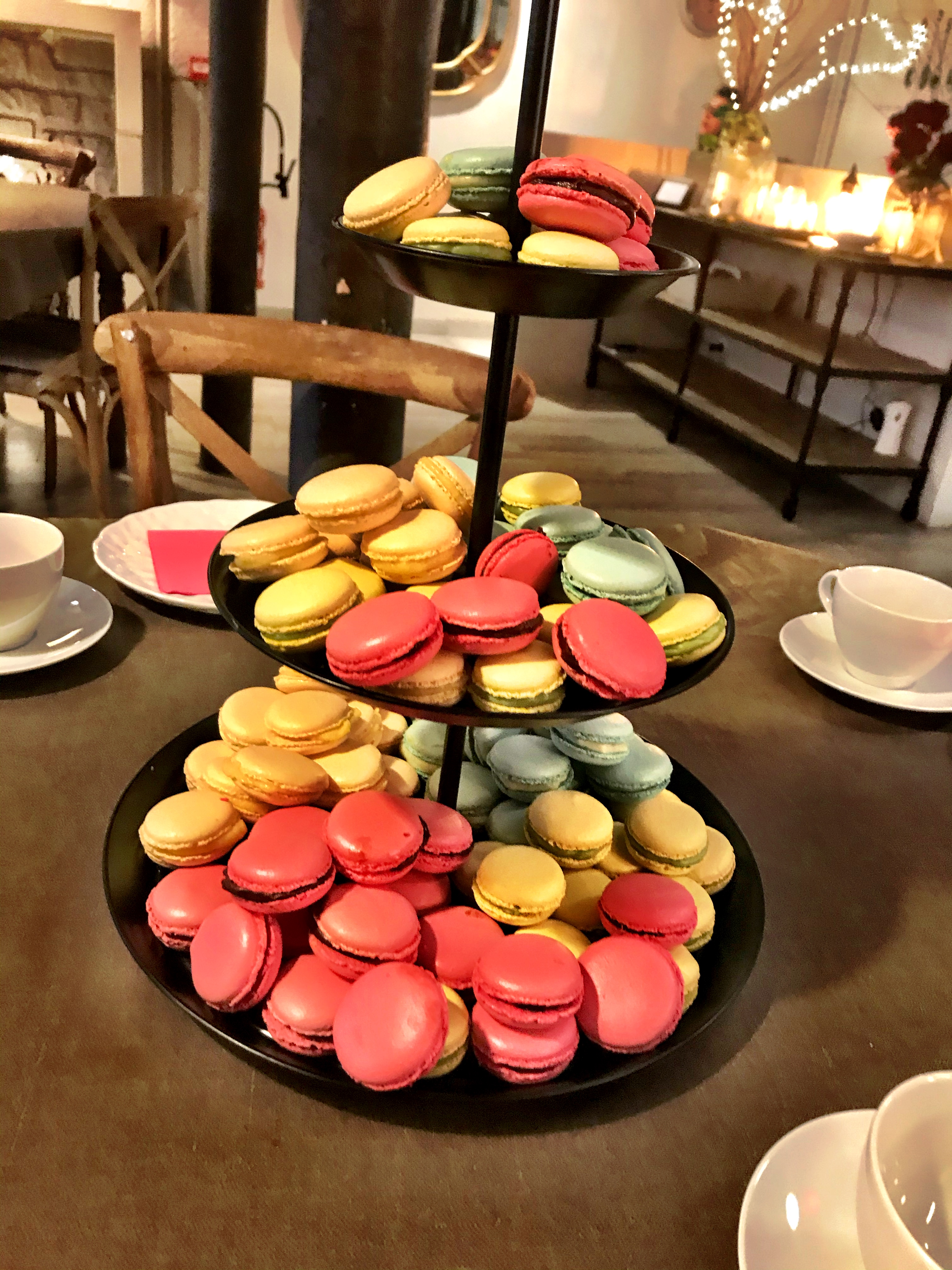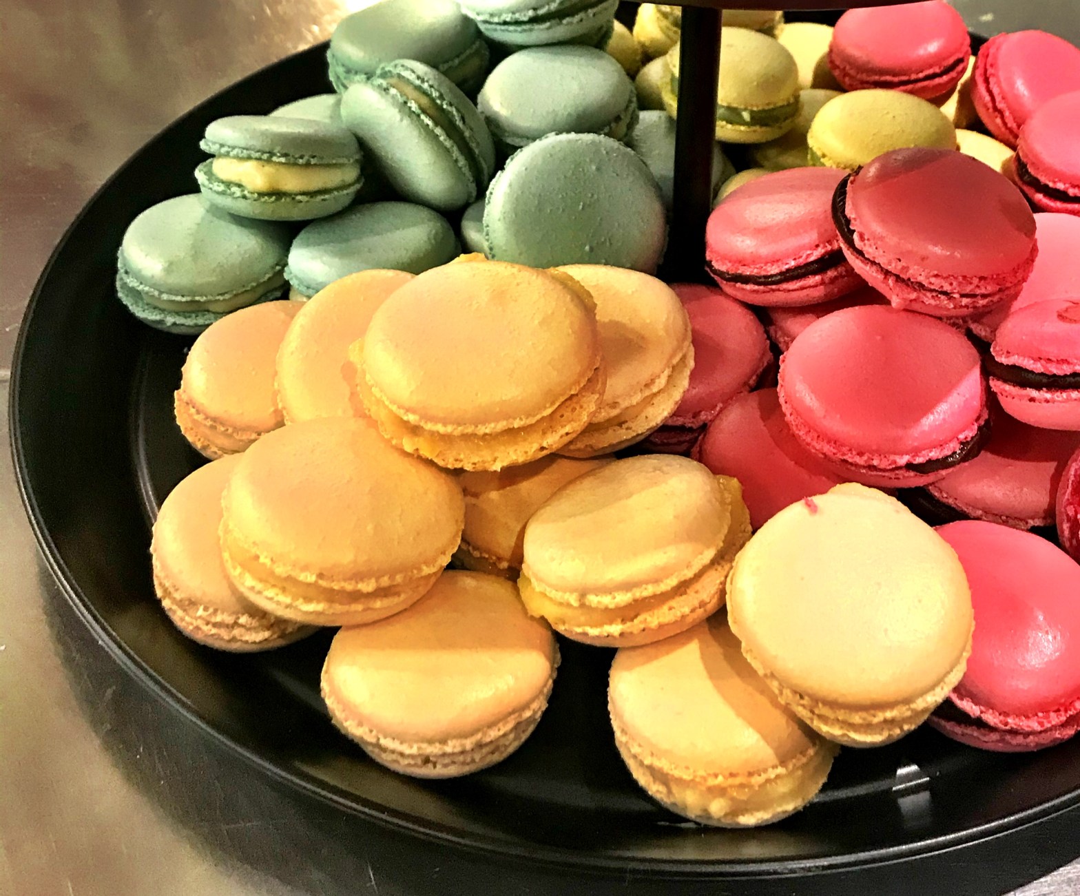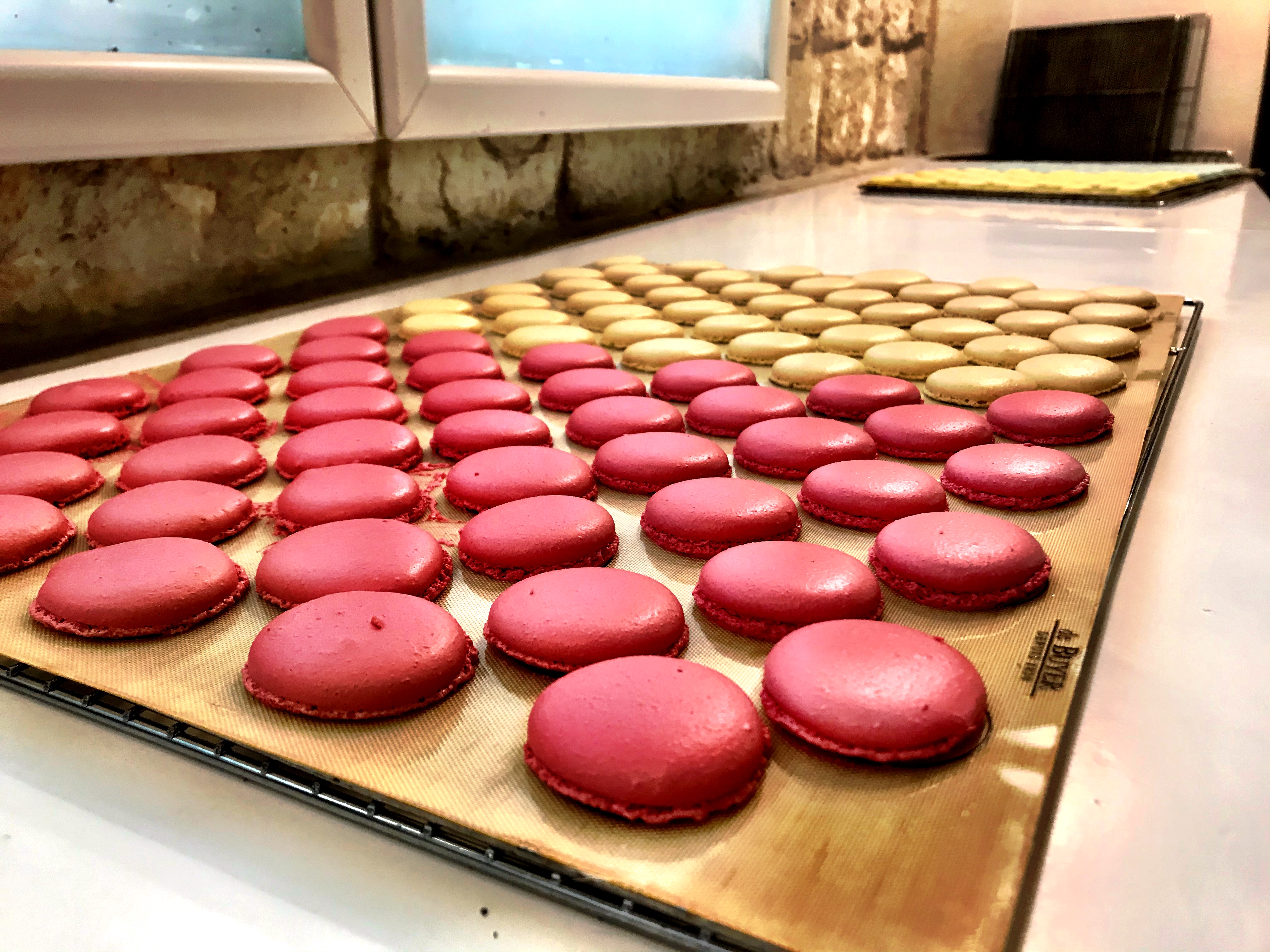 Working in pairs, we picked a colour and a flavour (lemon, raspberry, pistachio or chocolate). We selected yellow and lemon. Starting with the Italian Meringue base and then the filling, everything was from scratch and hands-on. We learned the proper piping technique, and once baked, we assembled our macarons.